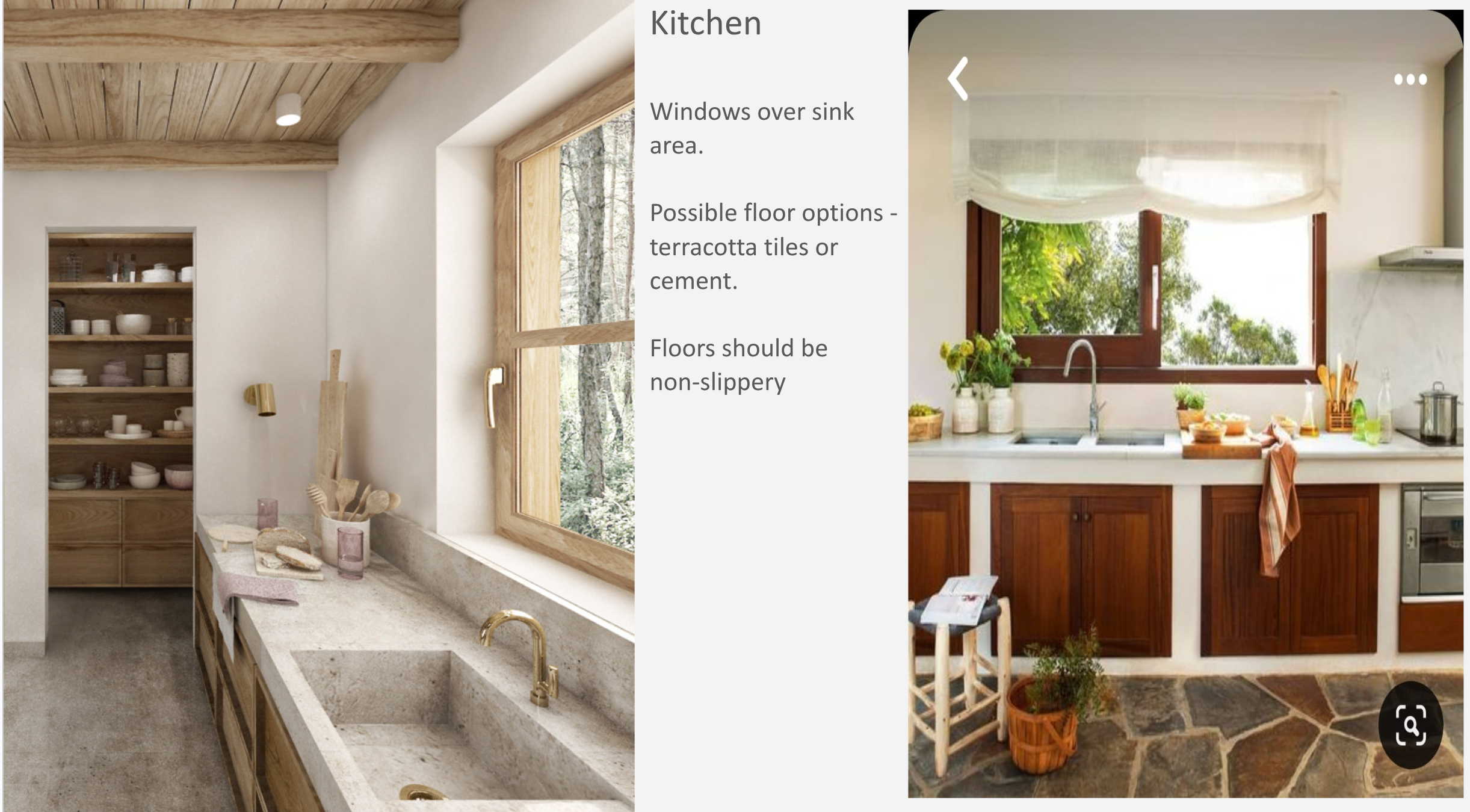 We went with the contractors to shops selling light fittings and tiles, and in each case had the mood board on hand to select the most cost-effective thing that fit the theme. We also found a local ironworker through our contractors - he has done a fantastic job. All the railings inside and outside the house, the perimeter fencing for the entire property, even the greenhouse.